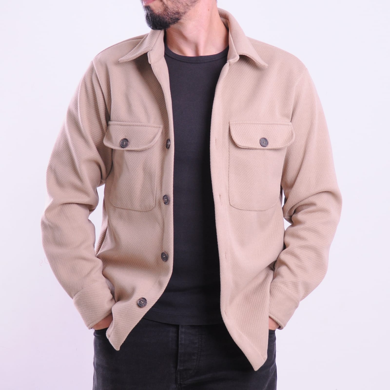 Conçue dans un tissu chaud et doux, elle peut se porter seule ou en veste légÚre pour un look décontracté mais soigné.